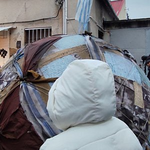 Na placu leżały szmaciane piłki – pośrodku jedna, największa, obok mała dziewczynka. Na piłkach przyklejone były niewyraźne skrawki listów oraz czarno-białe fotografie. W tle rozbrzmiewał śpiew żydowskiego kantora i opowieść o miejscu dziś niemal zapomnianym, a kiedyś nasyconym lękiem, nadzieją i ciszą.