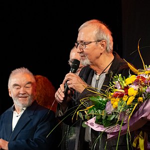Życzenia jubilatowi złożył również prezydent Bielska-Białej Jarosław Klimaszewski, któremu towarzyszyli naczelnik Wydziału Kultury i Promocji Przemysław Smyczek oraz Adam Ruśniak, występujący w imieniu organizatorów Festiwalu Fermenty.