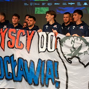 Punktem kulminacyjnym wieczoru była prezentacja kadry trenerskiej i zawodników. Kolejne wywołania, numery meczowe, reakcje widowni. Tu nie ma marketingu – o nastrojach mówią brawa albo ich brak. Szczególną uwagę przyciągnęli piłkarze, którzy dołączyli zimą. Każdy otrzymał koszulkę z numerem i symboliczny kredyt zaufania od kibiców. W piłce to dopiero początek historii. Symboliczne koszulki trafiły także do dyrektora Teatru Witolda Mazurkiewicza, Dominika Pawińskiego i Igora Klisia.