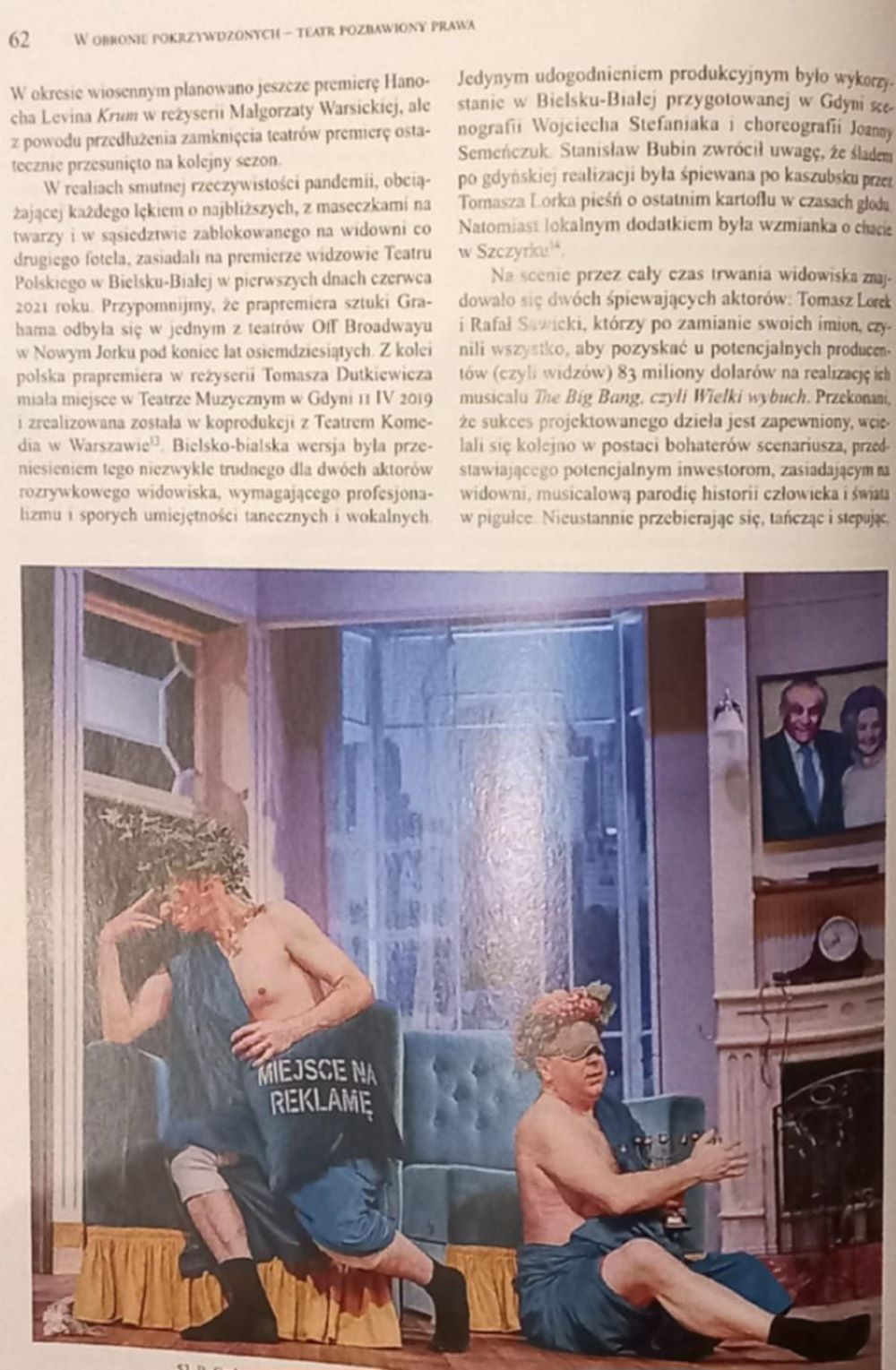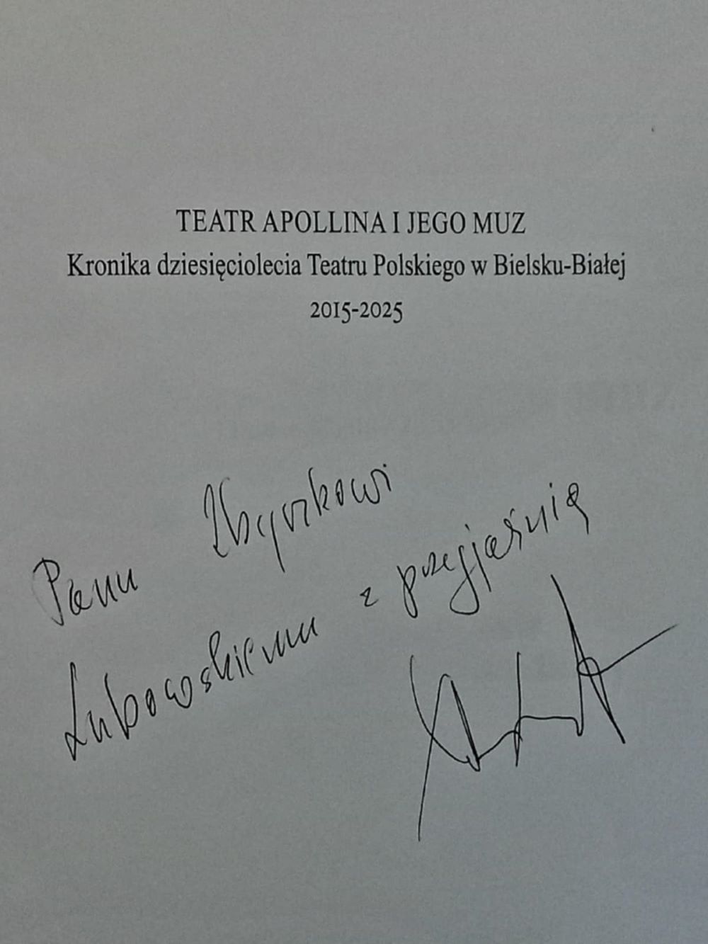 - Rekordowe w skali ogólnopolskiej wyniki frekwencyjne dowodzą, że teatr znalazł sposób na dotarcie do szerokiej publiczności. Stało się to jednak nie za sprawą kontynuacji linii repertuarowej Roberta Talarczyka, ale z powodu jej autorskiego ukształtowania przez obecnego dyrektora Witolda Mazurkiewicza w taki sposób, by tę masowość osiągnąć – czytamy w książce Andrzeja LINERTA pt. „Teatr Apollina i jego muz – tom drugi”, stanowiącej kronikę dziesięciolecia Teatru Polskiego w Bielsku-Białej w latach 2015-2025.