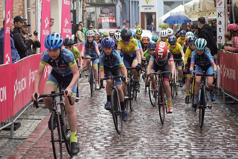 Najmłodsi uczestnicy zawodów, którzy wystartowali o 10.00 mieli więcej szczęścia od swoich starszych kolegów i koleżanek, którzy musieli przejechać trasę w strugach deszczu.