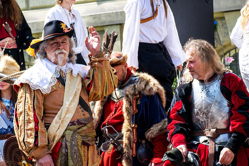 Po oddaniu salwy z trzech rusznic i prezentacji ekip przybyłych na to niezwykłe wydarzenie, kolorowy tłum wyruszył ulicami miasta.