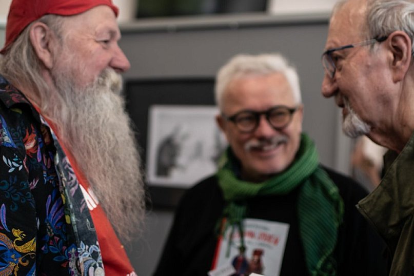 Sobotni późny poranek w Książnicy Beskidzkiej pachniał satyrą. „Śniadanie Fermentowe: Jajecznica z Cebulą” połączyło wernisaż rysunków Henryka Cebuli z rozmową o książce Violetty Ozminkowski „Humorystki”.