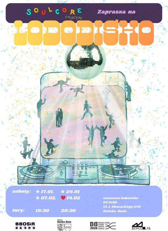 - O przyjazną atmosferę zadba założony na Islandii kolektyw artystyczno-DJ-ski Soulcore, którego misją jest celebracja muzyki z duszą. Po powrocie do rodzinnego Bielska-Białej, wraz z namaszczonym przez samą Björk soundystemem Soulcore rozpościera skrzydła. DJe zaprezentują przekrój utworów z bliskich i dalekich stron, od czeskiego funku zaczynając, na kolumbijskiej cumbii kończąc. Mamy nadzieję, że ciepła waszych serc i gorącej muzyki granej z winyli nie roztopią zbyt szybko tafli lodowiska – zapowiadają organizatorzy Bielsko-Bialski Ośrodek Sportu i Rekreacji i Soulcore.