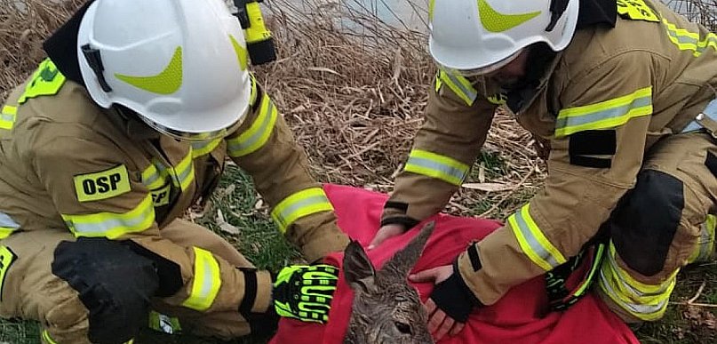 Dramatyczne wydarzenie nad stawem: Sarna ratowana przez strażaków.