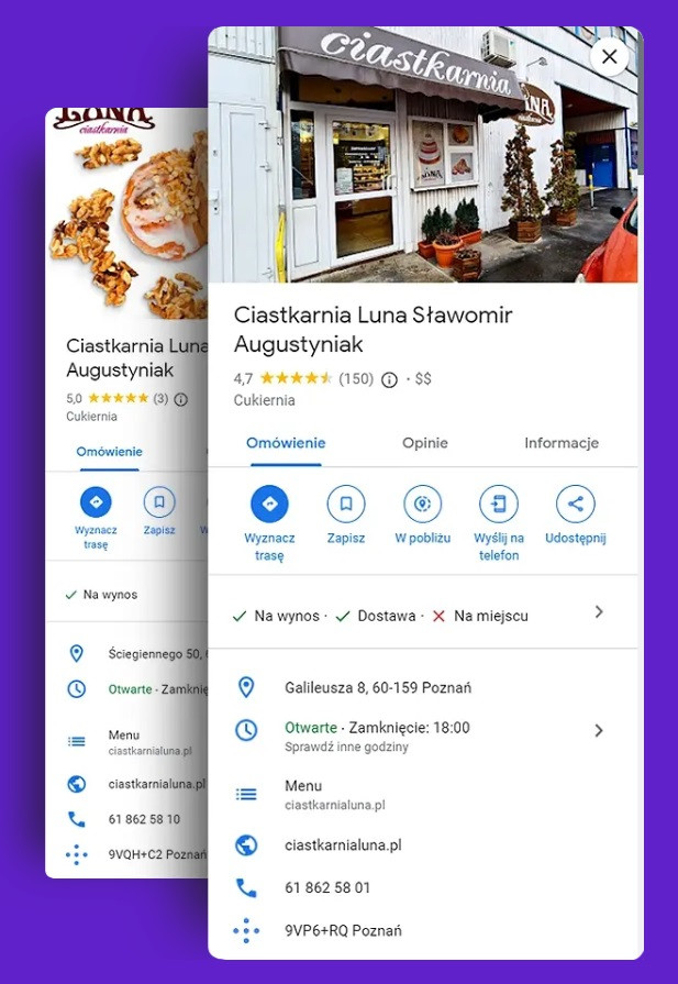 Tak to wygląda. Nawet jeśli mamy sklep czy salon usługowy pod blokiem, to przed pierwszą wizytą często „oogle’ujemy” firmy w danej lokalizacji, sprawdzamy co ma w ofercie i co piszą o niej inny. Często nie każdy użytkownik szuka konkretnej firmy, a wizytówki wyświetlają się czasami na generyczne zapytania np. restauracja na Woli, barbershop w Kielcach itp.