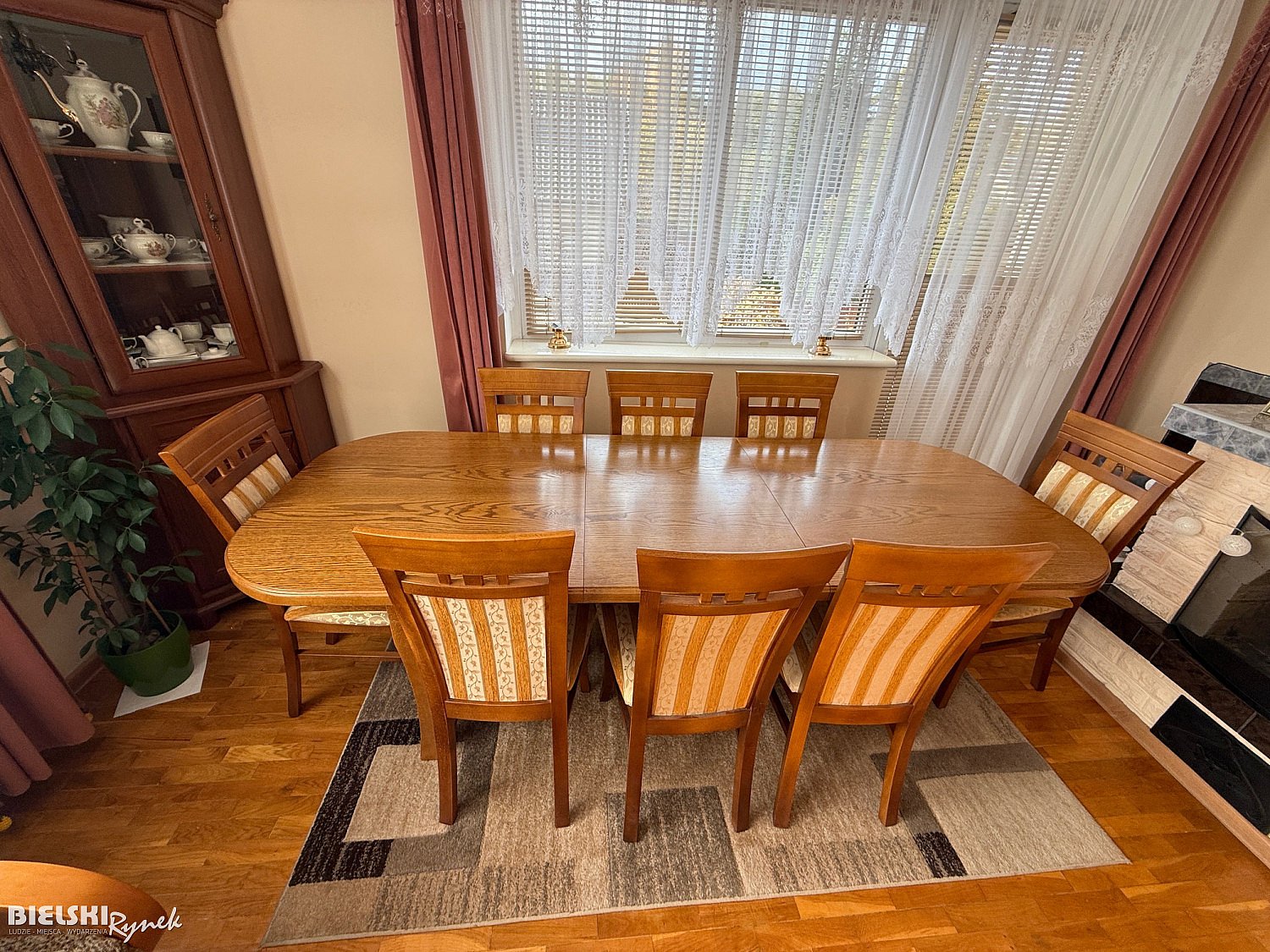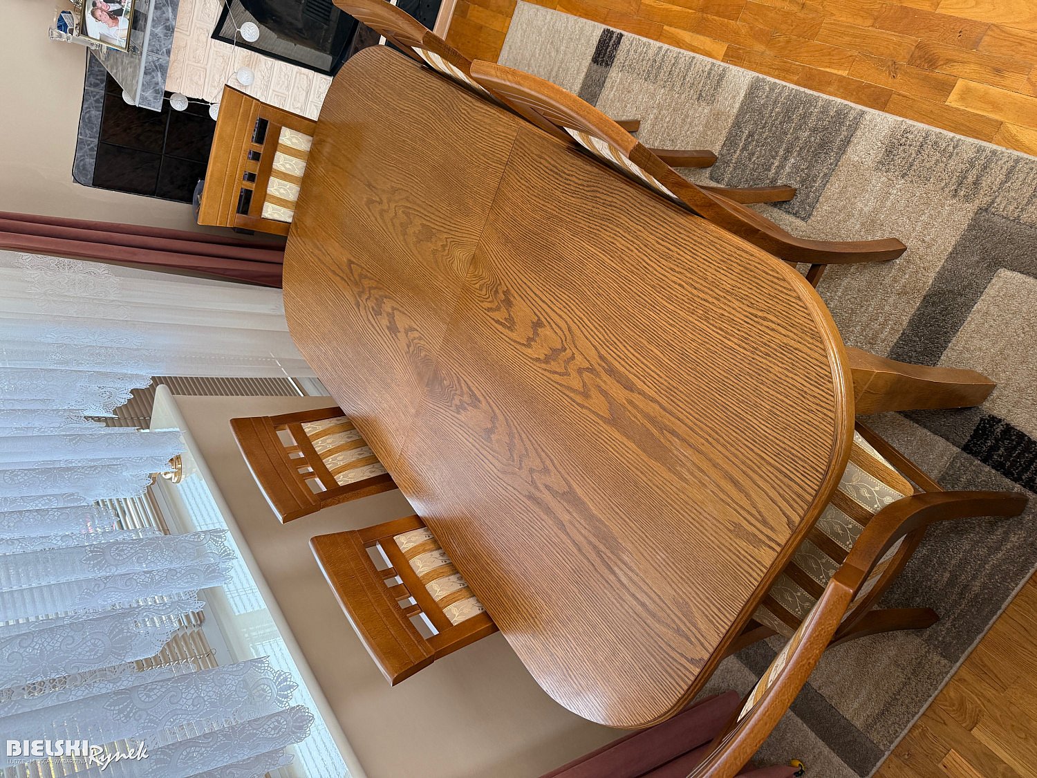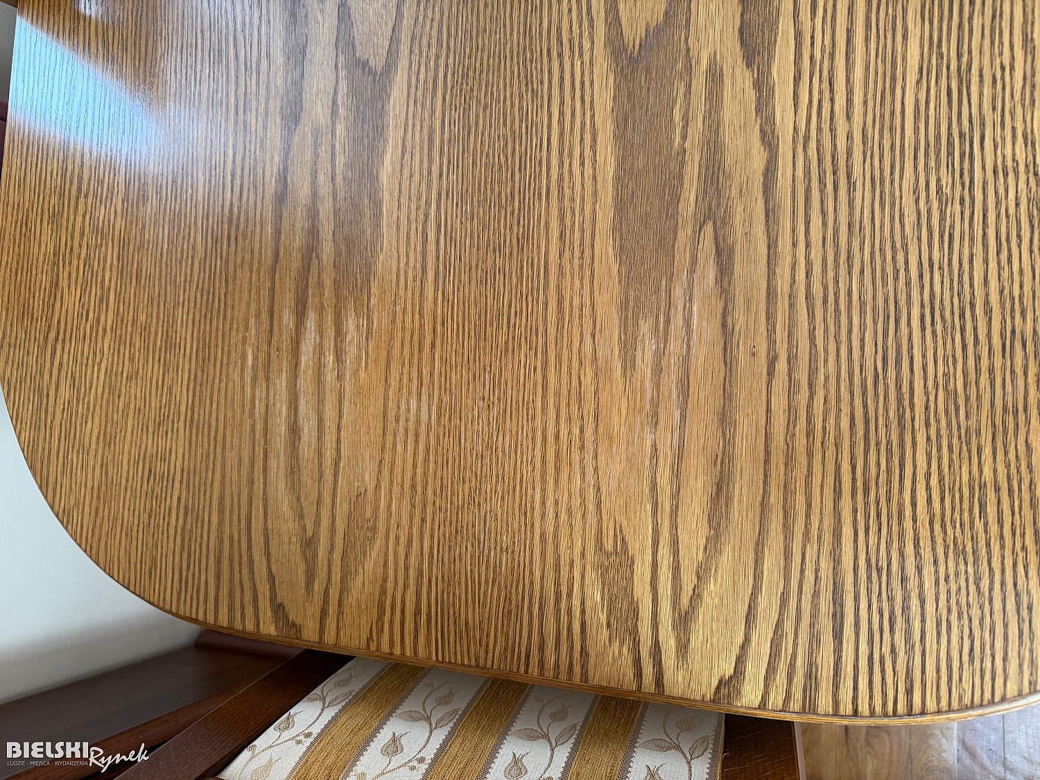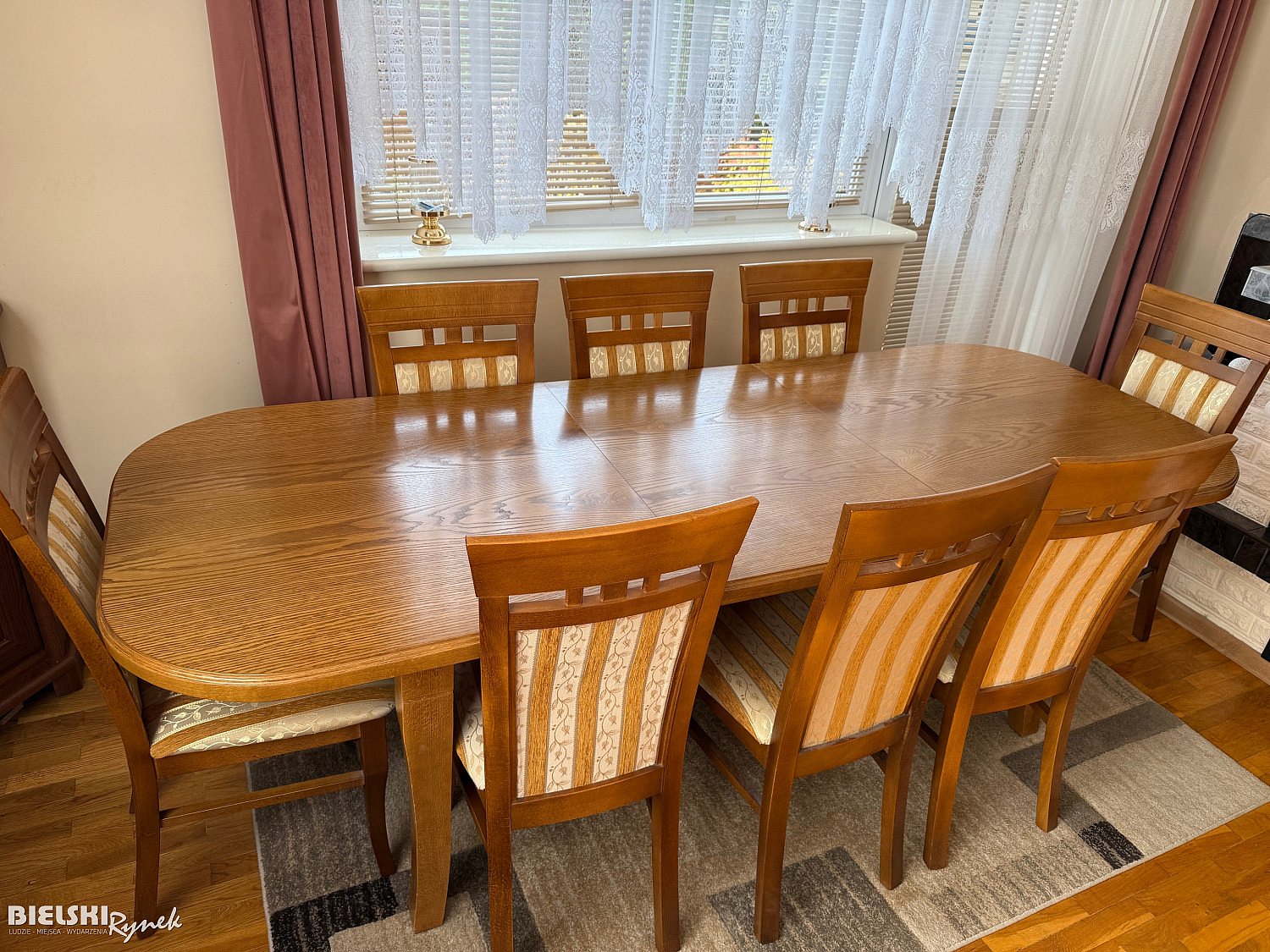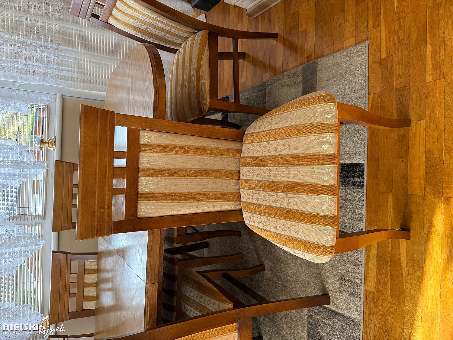 Witam. mam do sprzedania stół plus 8 krzeseł. Idealny do salonu. Stan bardzo dobry. Krzesła bez plam i przetarć. Stół w jednym miejscu delikatnie jasne odbarwienie widoczne na zdjęciu nr 3. Zapraszam do zakupu.