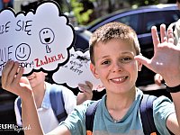 Inauguracja akcji "Rower pomaga" na bielskiej Starówce. W happeningu wzięli udział uczniowie klasy 2 Szkoły Podstawowej nr 3 w Bielsku-Białej.