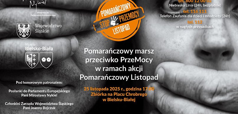 Bielsko-Biała dołącza do ogólnopolskiej akcji Pomarańczowy Listopad. Przez cały miesiąc odbędą się wykłady, panele i warsztaty poświęcone przeciwdziałaniu przemocy, a kulminacją będzie Pomarańczowy marsz przeciwko PrzeMocy – 25 listopada o 17:00 z Placu Chrobrego.