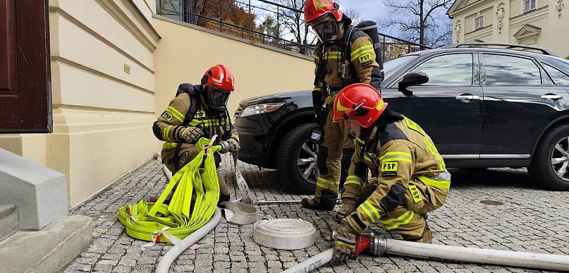 Dym, alarm i akcja ratunkowa w teatrze. Pracownicy ewakuowani w ramach ćwiczeń