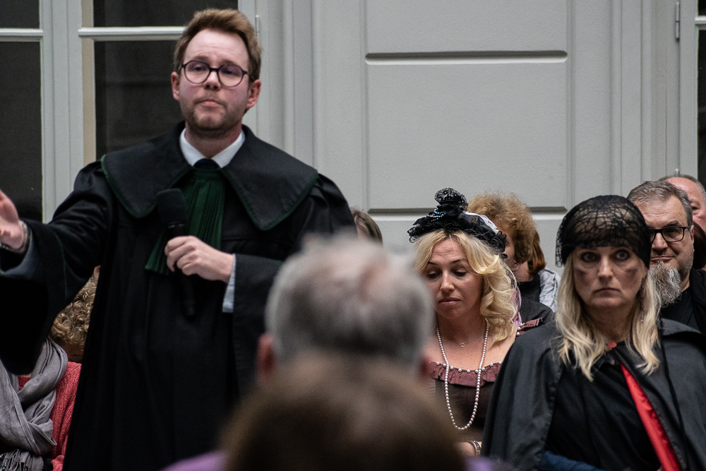 Już na wstępie zapowiedziano, że nie będzie to wierne odtworzenie średniowiecznego procesu. Kontekst historyczny miał służyć jako tło – nie rekonstrukcja. Choć nie zabrakło świadków w strojach z epoki, nikt nie miał złudzeń, że taki proces może odbyć się w każdej chwili i w każdej epoce – zmienią się tylko zarzuty.