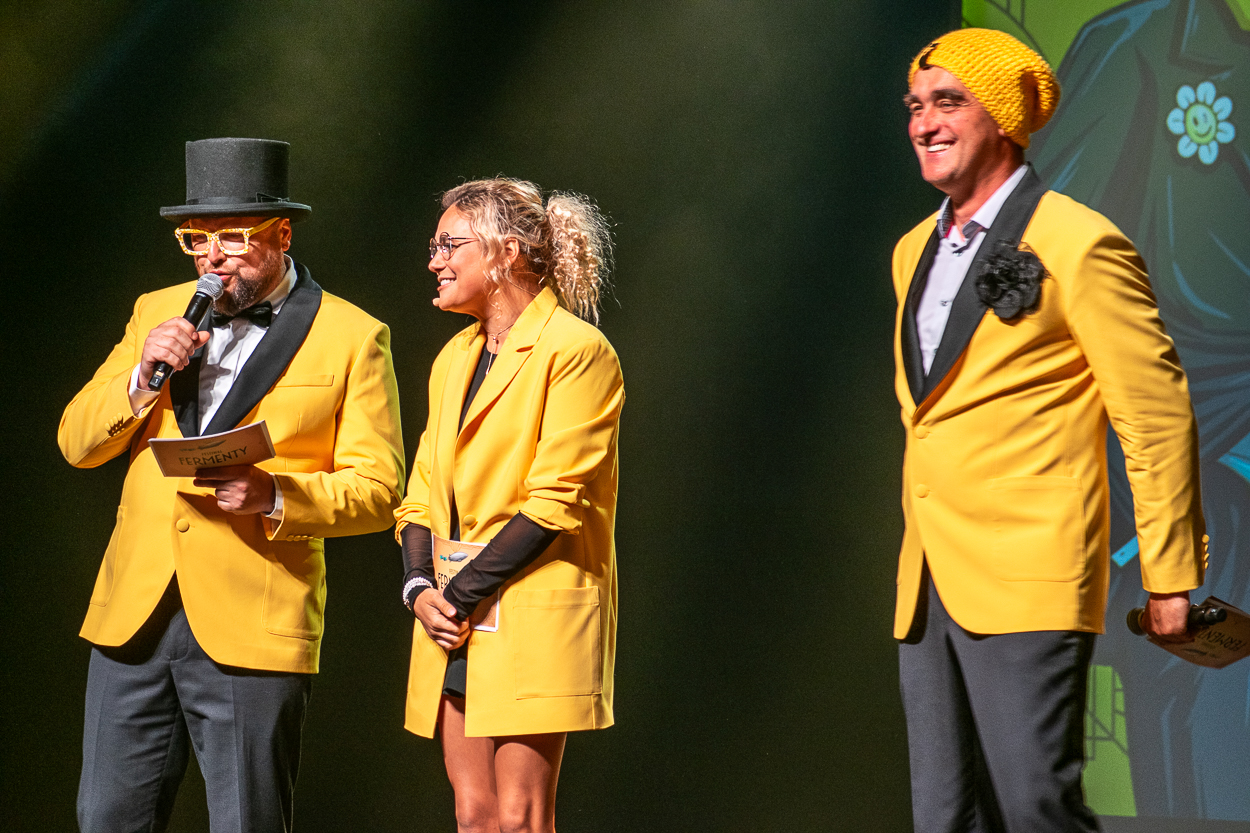 Jeszcze przed częścią artystyczną, scena należała do osób zasłużonych dla FERMENTÓW – twórców, organizatorów i przyjaciół festiwalu. Złote FERMENTY, najwyższe wyróżnienie, otrzymali w tym roku: Olga Łasak, doceniona za sceniczną charyzmę i konsekwentną obecność na festiwalu, oraz gospodarz miasta Jarosław Klimaszewski, wyróżniony za wieloletnie wsparcie i zaangażowanie w promocję kultury.